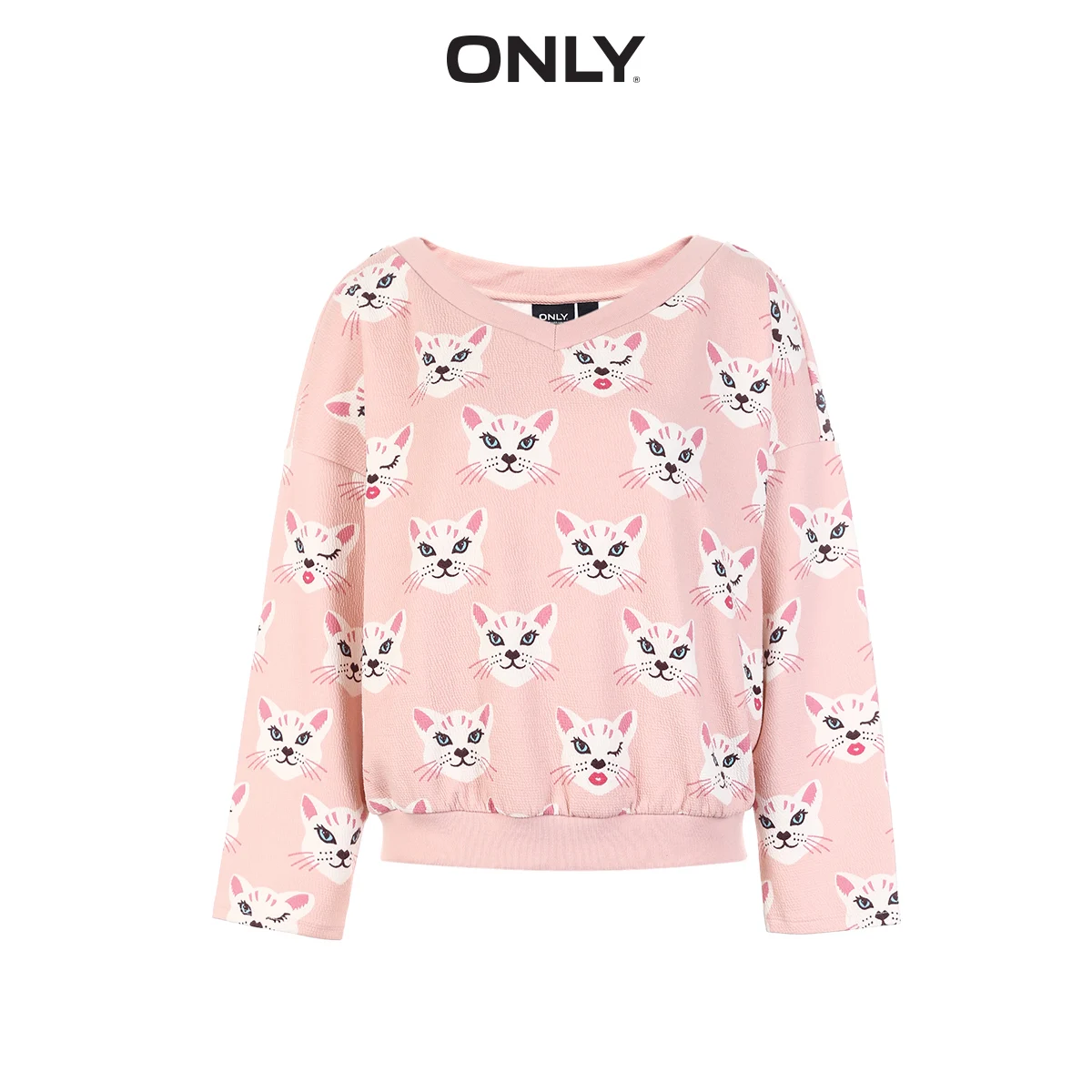 Best ONLY Autumn Winter Women's Cartoon Cat Print Batwing Sleeves Pullover Sweatshirt 11839S547