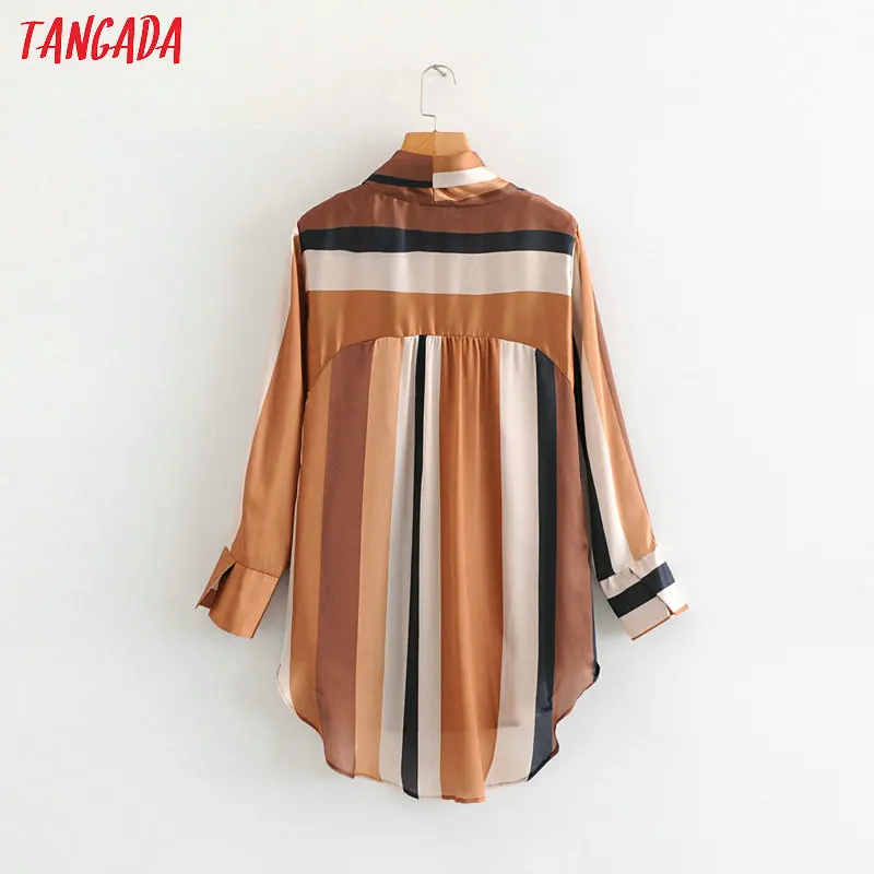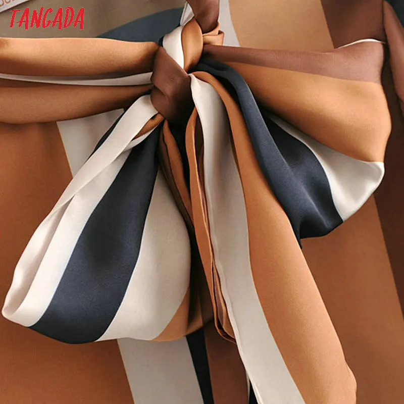 New Tangada women striped blouse geometric print bow tie neck long sleeve shirts casual loose tops blus