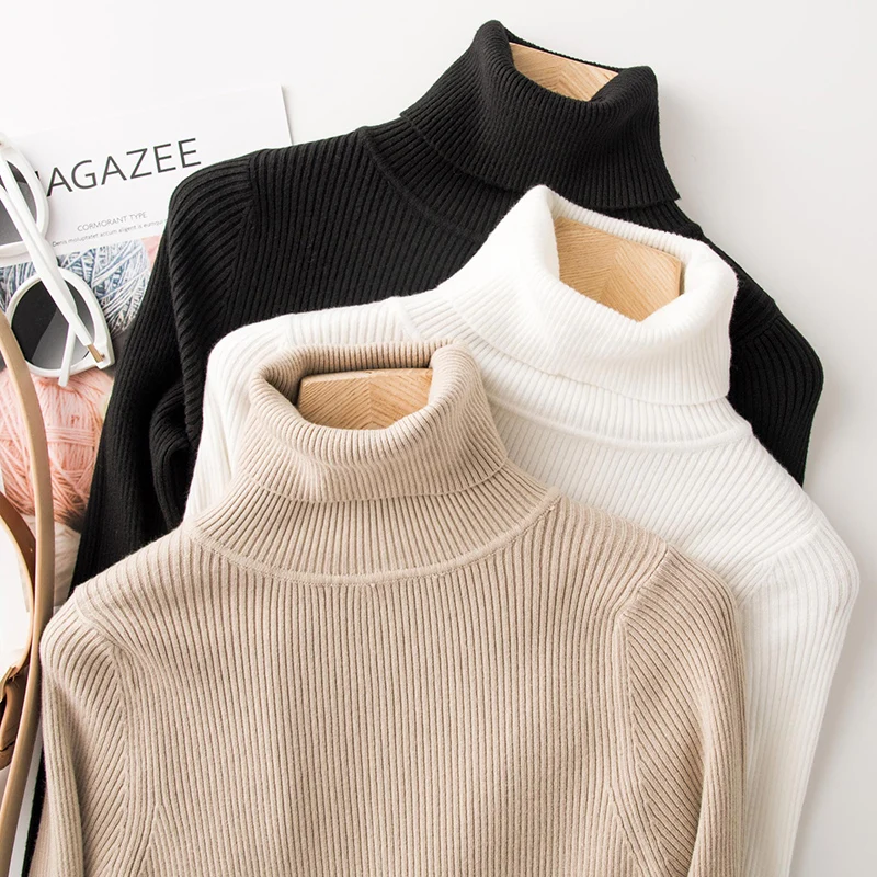 Best women turtleneck sweater pullover winter fall knitted slim jumpers tops quality stretch basic shirt