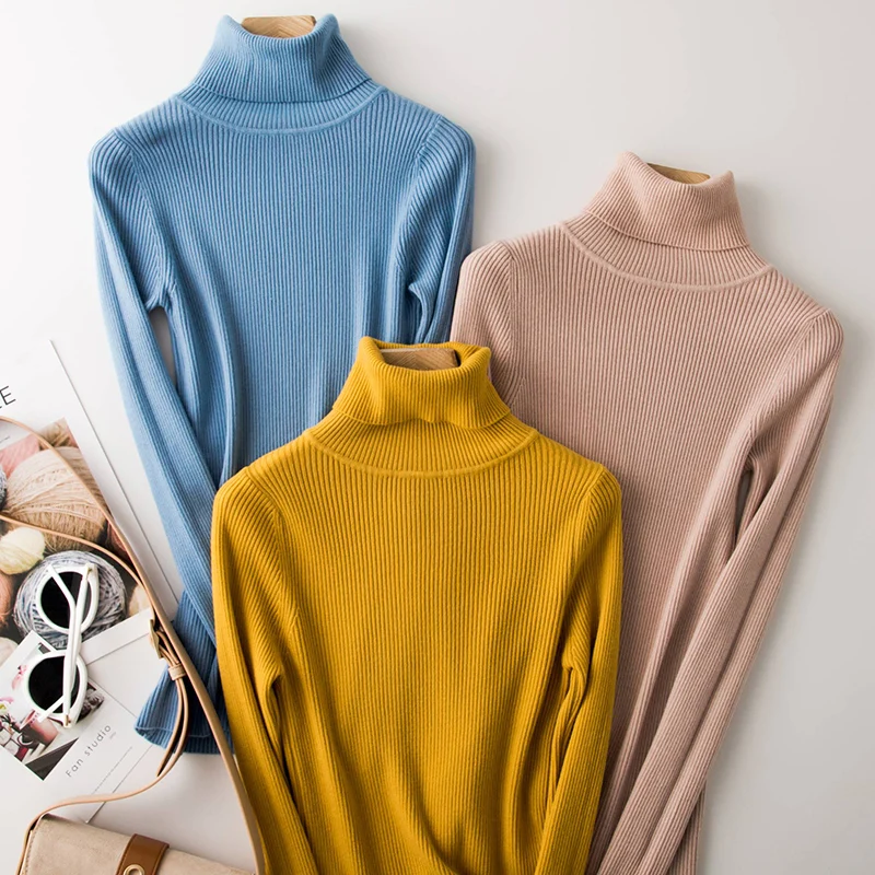 Promo women turtleneck sweater pullover winter fall knitted slim jumpers tops quality stretch basic shirt