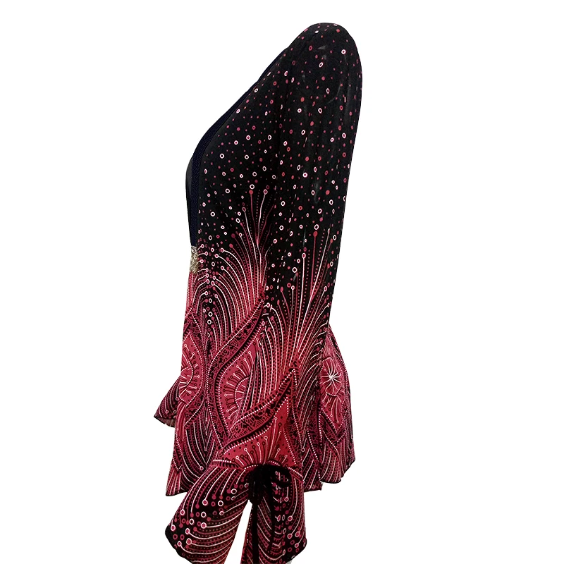 Best YTL Big Women Diamond Flare Sleeve Pattern Patchwork Floral Print Vintage Kimono Style Slim Plus Sh