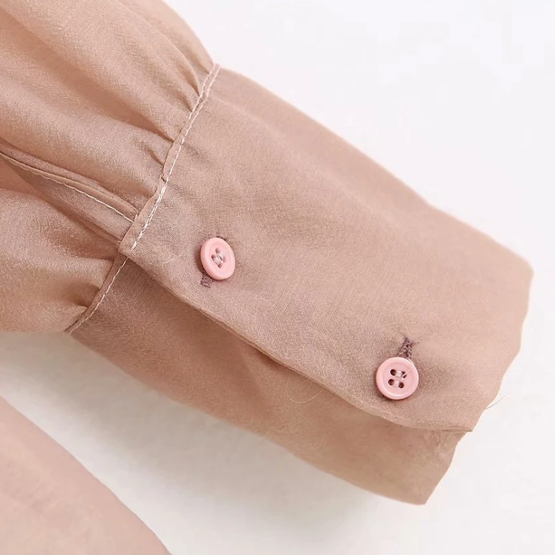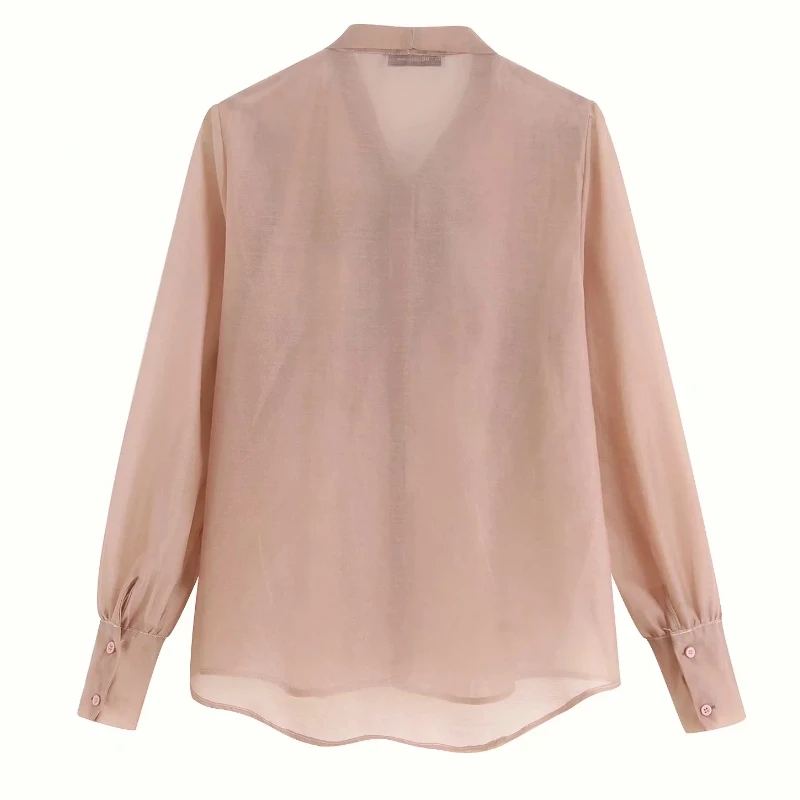 Best 2019 women elegant bow tie decoration transparent casual organza smock blouse shirts women long sle