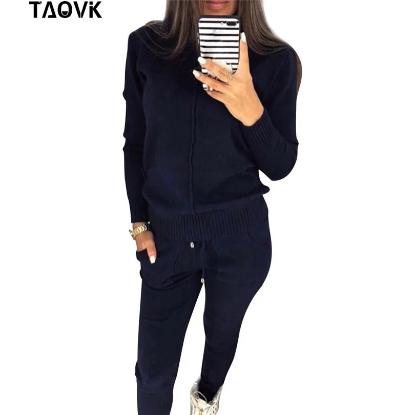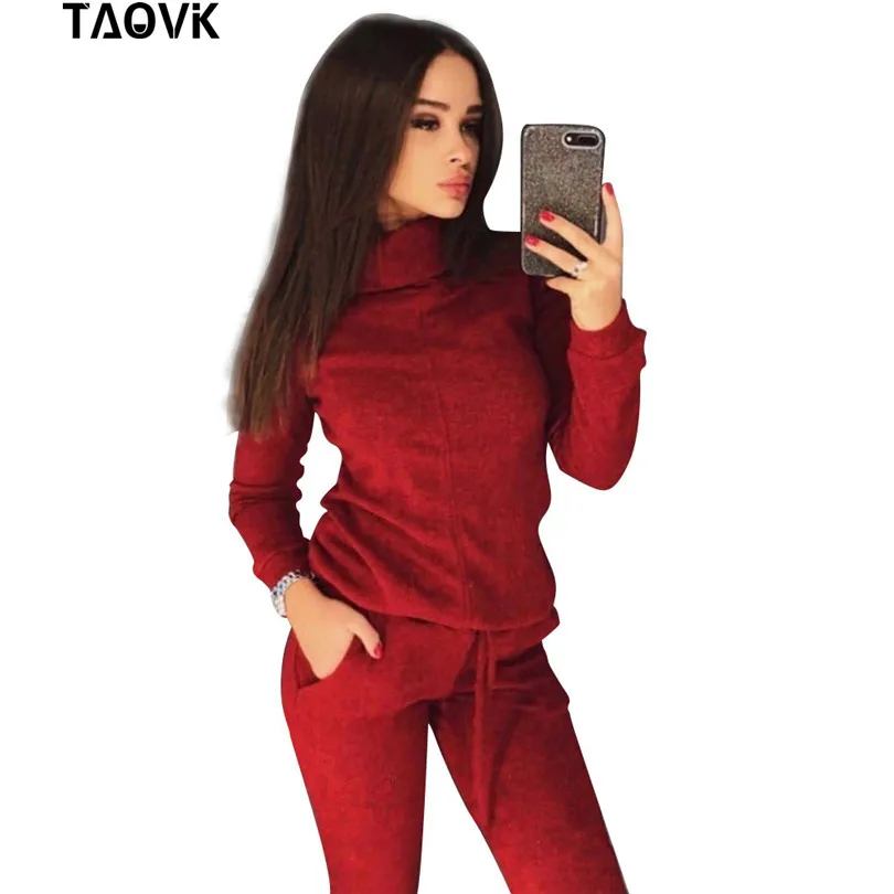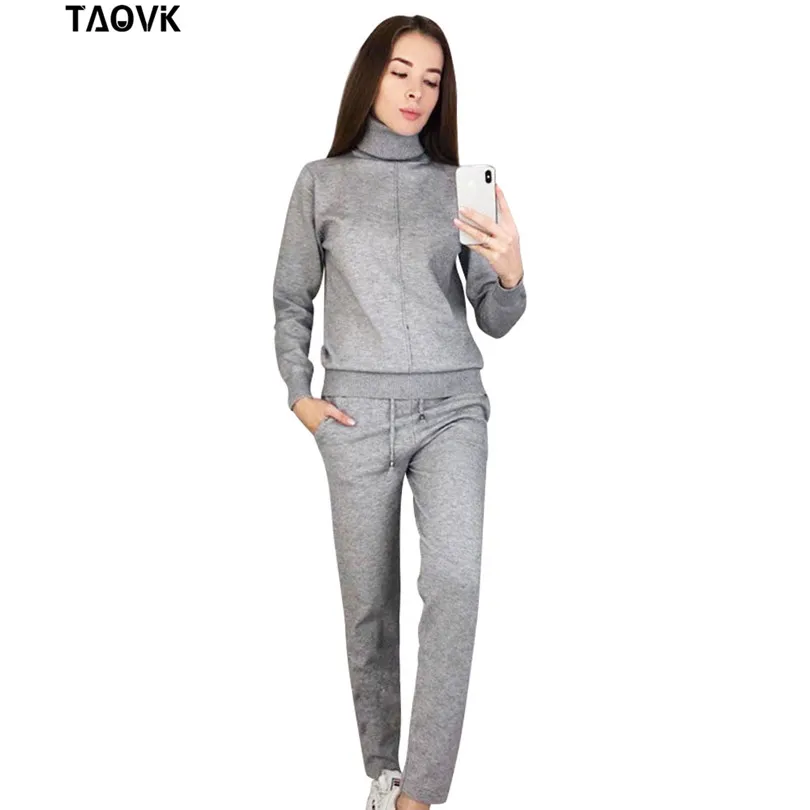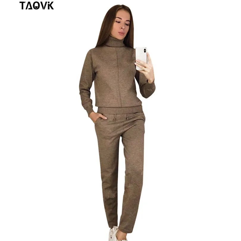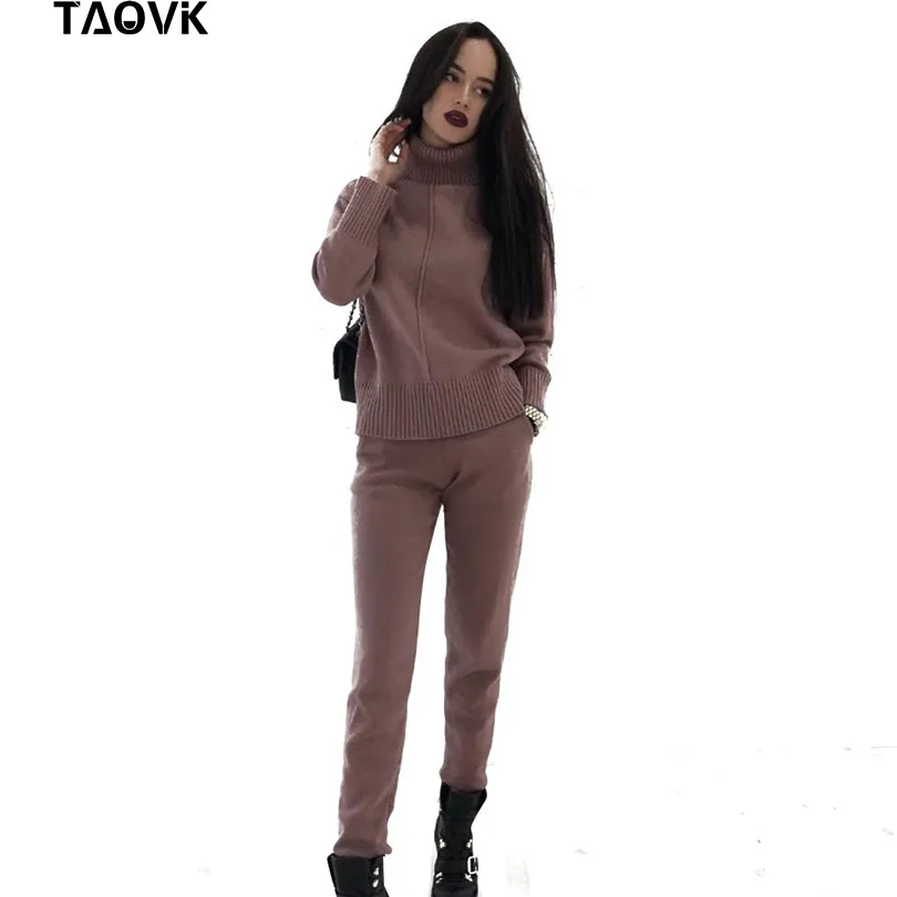 Buy TAOVK Women's knitted Suits Spring sweater set Mid Line Turtleneck Pullover Sweater Pants two piece