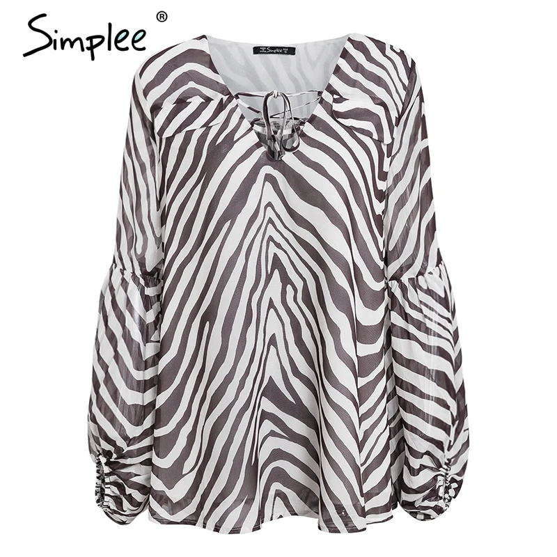 Today i want to review about Simplee Zebra stripe printed women blouse shirt Plus size female top shirt Elegant v neck lace up l. I uncover this cool product from China Online Store, best manucafturer.