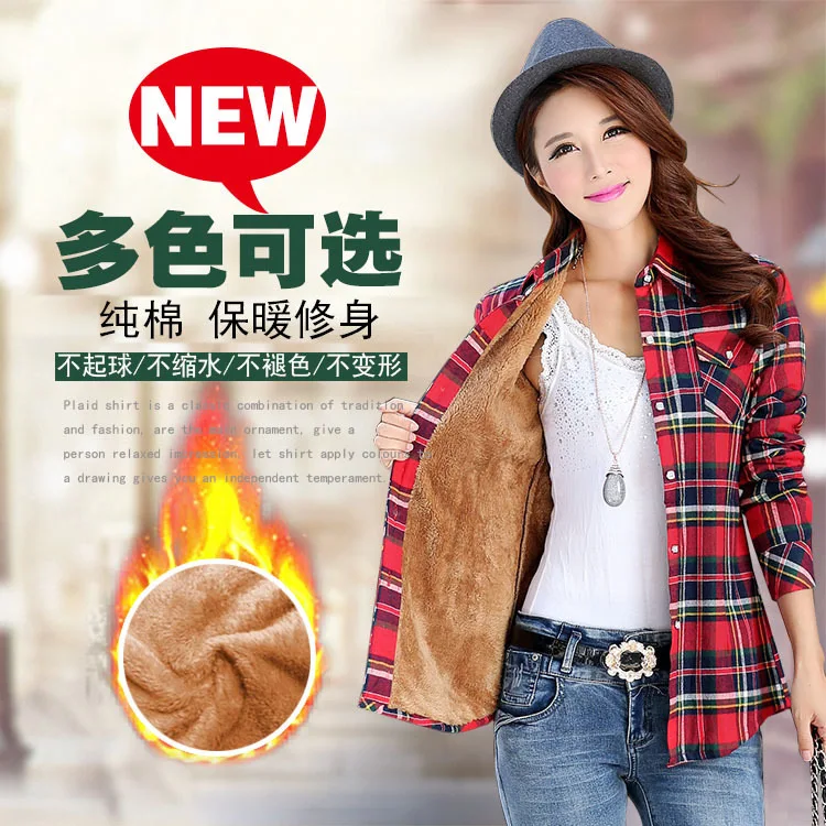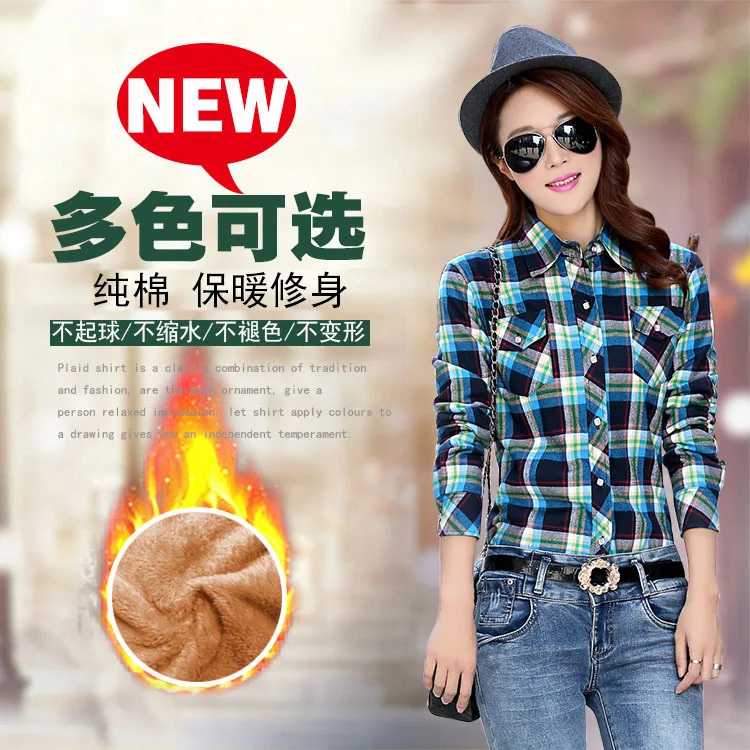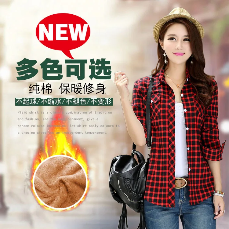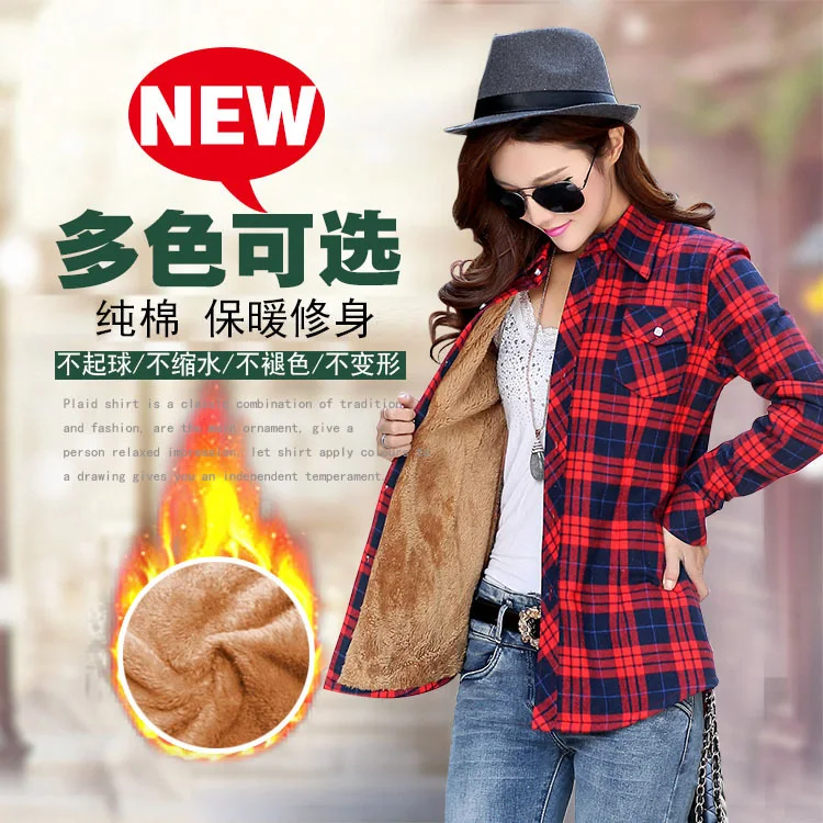 New New Fashion Warm Blouse Ladies Plaid Shirt Autumn Winter Long-sleeved Plaid Plus Size Tops Velvet W