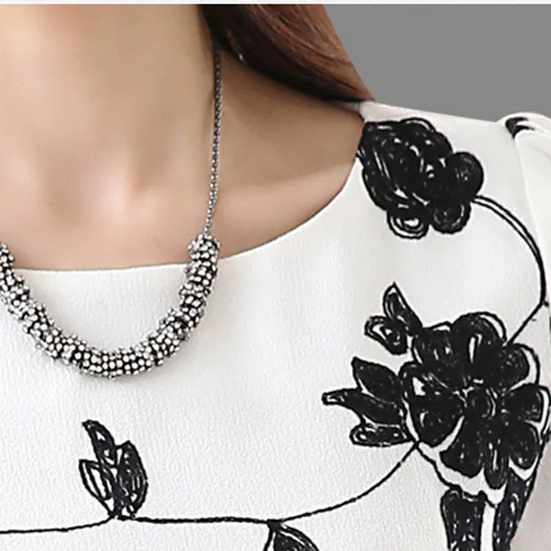 Best Embroidery Design Lady White Chiffon Blouse Plus Size S-3XL Korean O-Neck Half Sleeve Style Women F