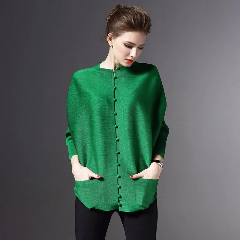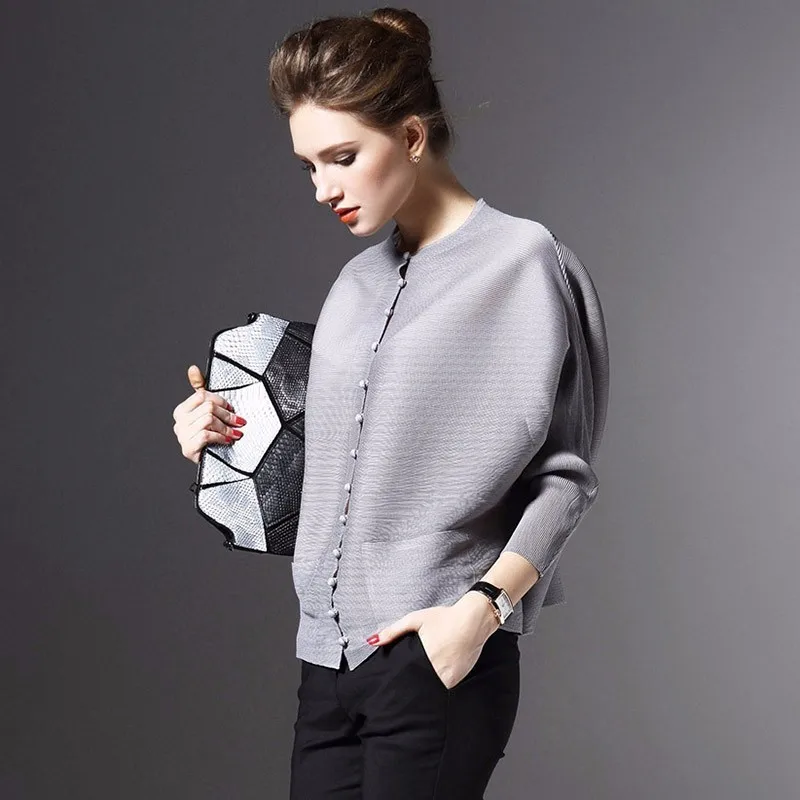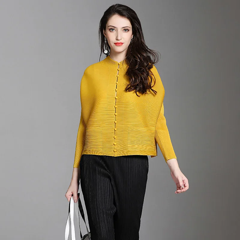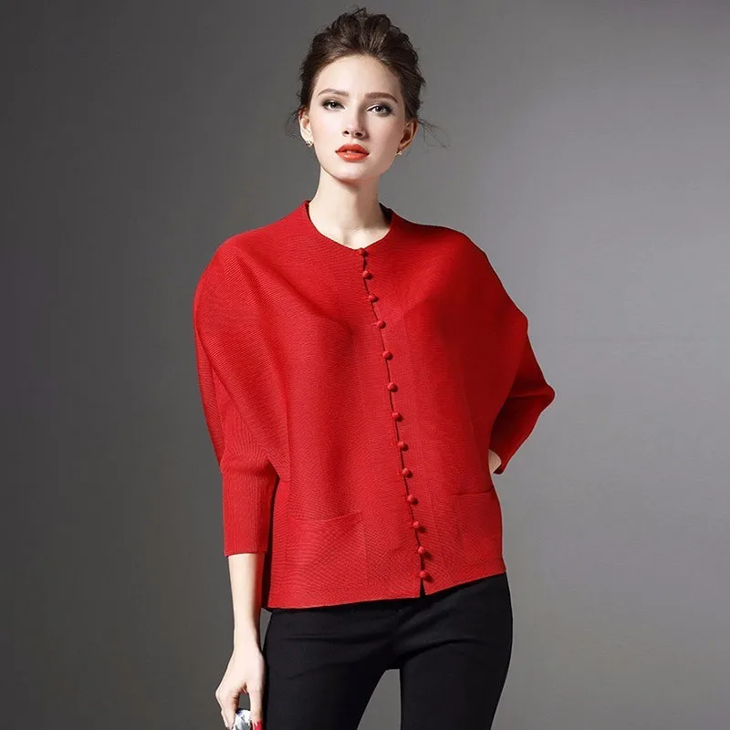 Best LANMREM 2020 New Fashion Pleated Clothing Shirt O-neck Long Batwing Sleeve Single Breasted Pleated