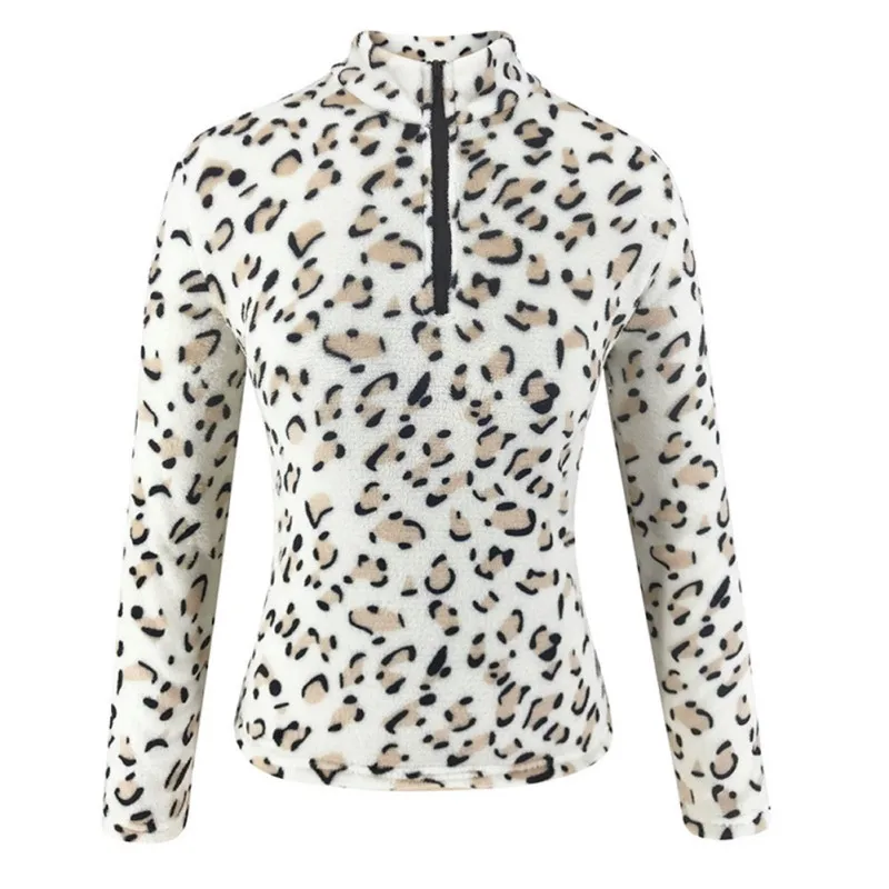 Best Leopard Patchwork Plush Sweatshirt Women Warm Fleece Casual Winter Oversized Stand Collar Pullover