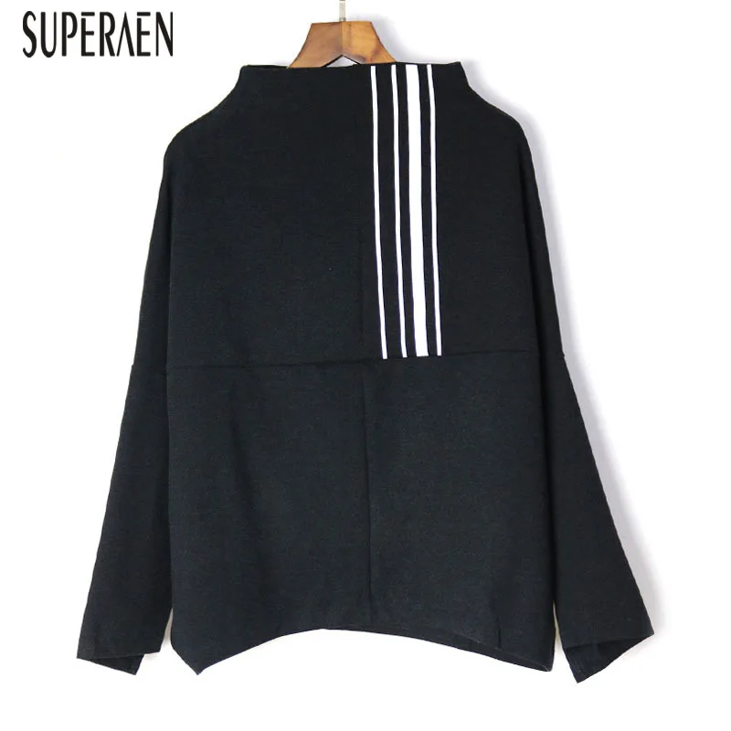 New SuperAen Europe Hoody Wild Cotton Sweatshirts Women Autumn New 2019 Stand Collar Stripe Sweatshirts