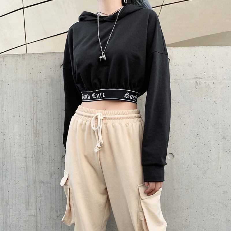 Buy Darlingaga Casual Kpop Autumn Winter Hoodies Women Letter Printed Patchwork Pullover Harajuku Crop