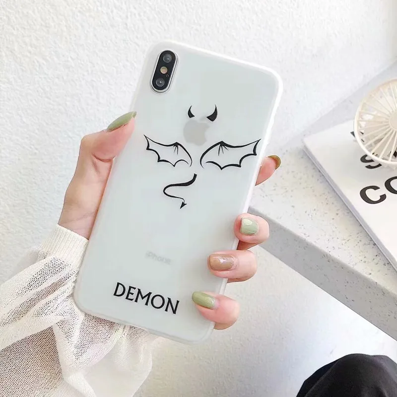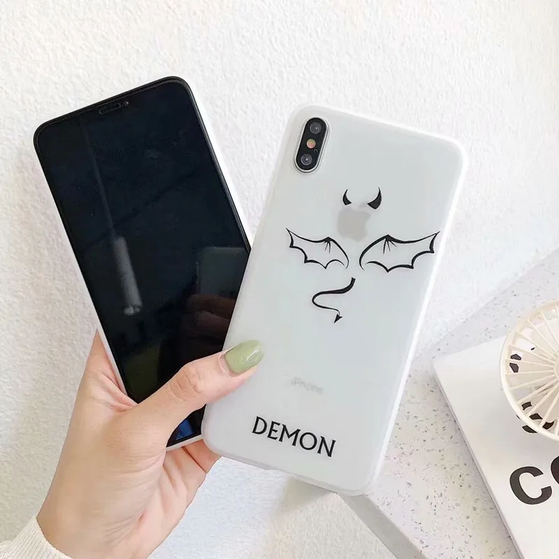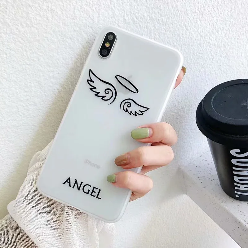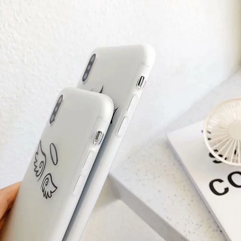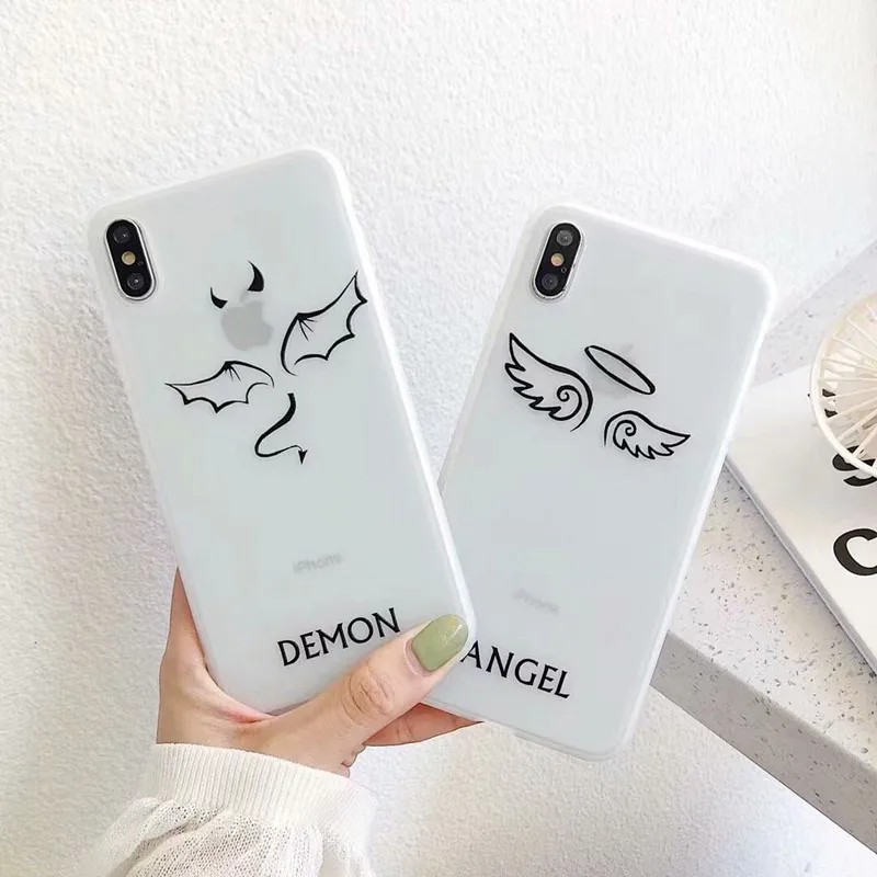 Best For iphone 11 Pro Max case silicone cover Fashion Angel Demon Couple Phone Case for coque iPhone 7