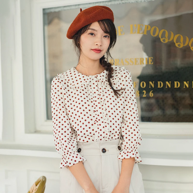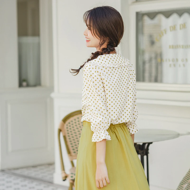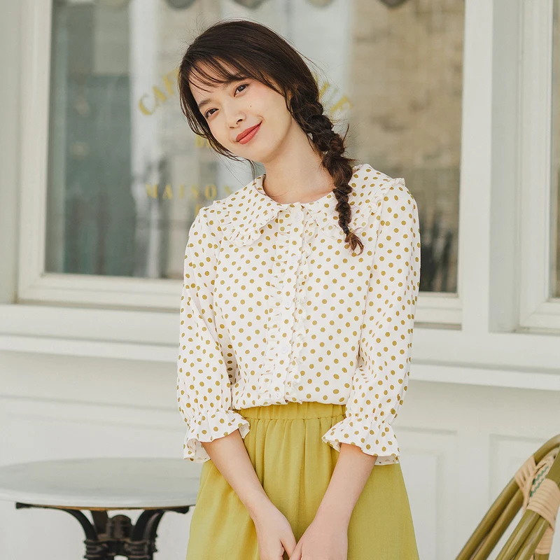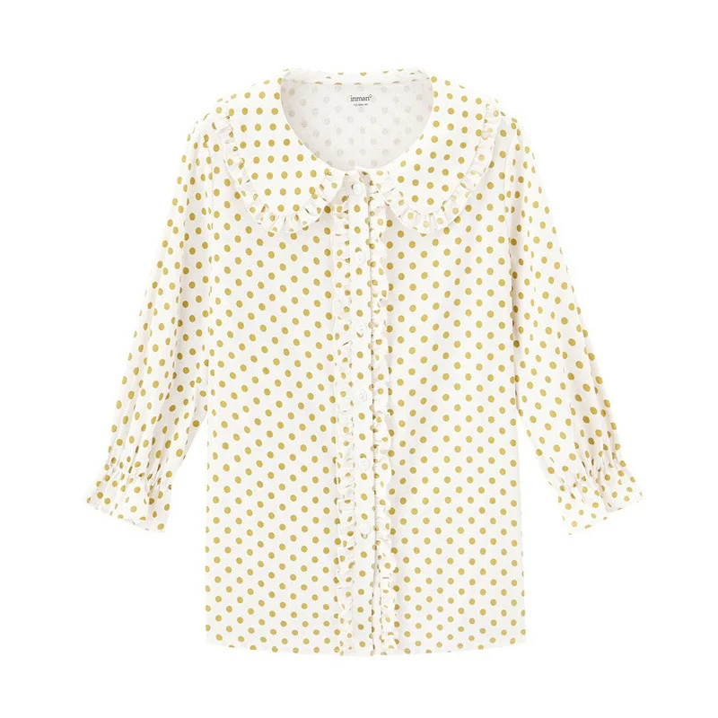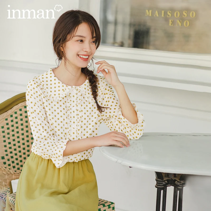 Best INMAN 2020 Spring New Arrival Literary Doll Colar Lace Age-reducing Wave Point Loode Medium Sleeve