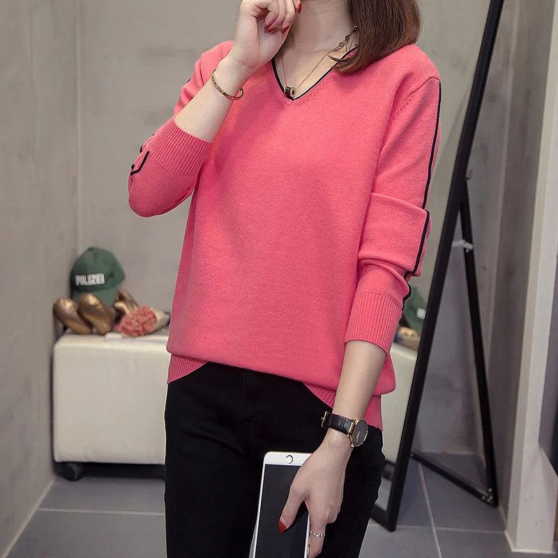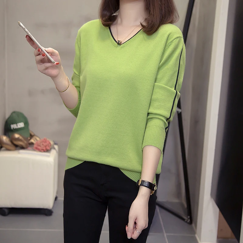 Best Plus Size V neck Pullover Sweaters Women Autumn Korean Fashion Long Sleeve Loose Stretch Soft Knit