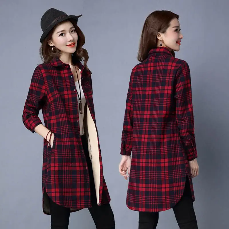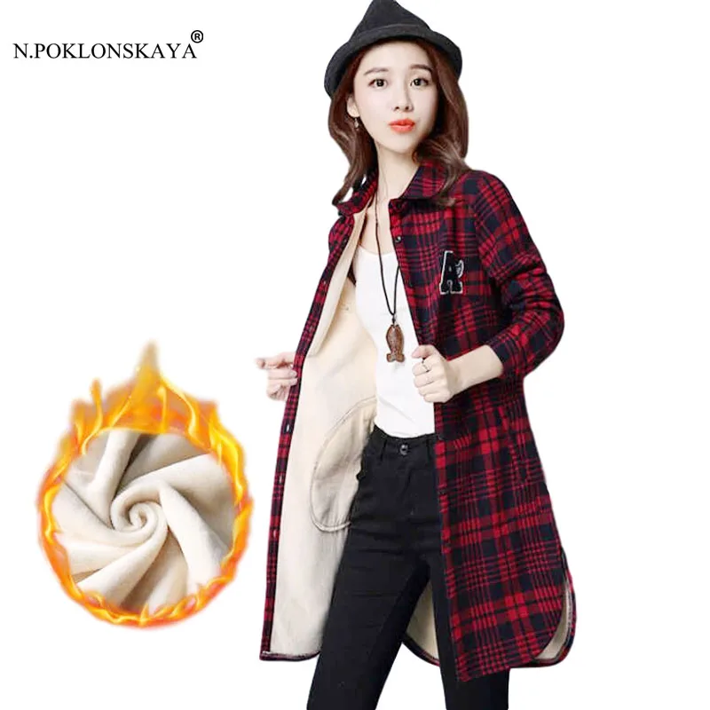 Buy Winter Shirts Warm Tops Women Long Sleeve Velvet Thick Shirt Long Outerwear Female Turn-down Collar
