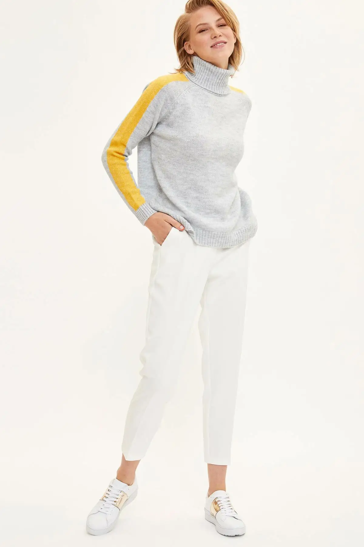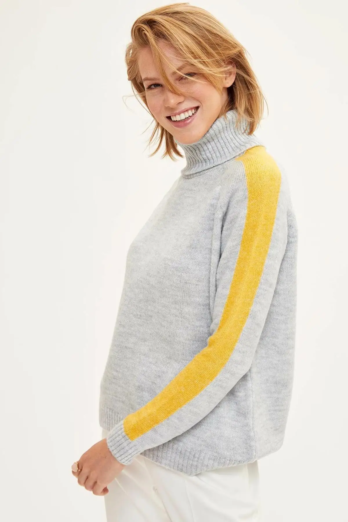 New DeFacto Woman Light Grey Turtleneck Pullover Women Casual Striped Long Sleeve Sweaters Female Winte