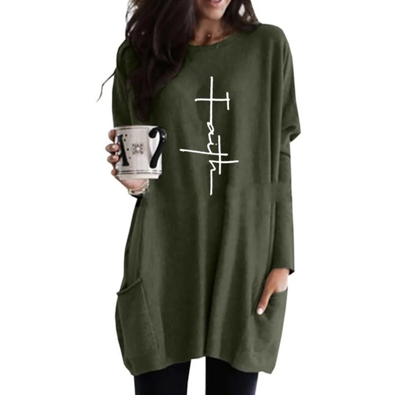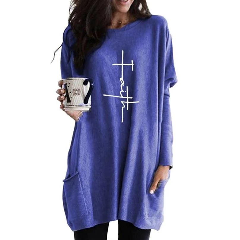 Buy Hoodies For Women Long Sleeve Casual Pocket FAITH Letters Print Kawaii Tops Sweatshirt Femmes Sweat