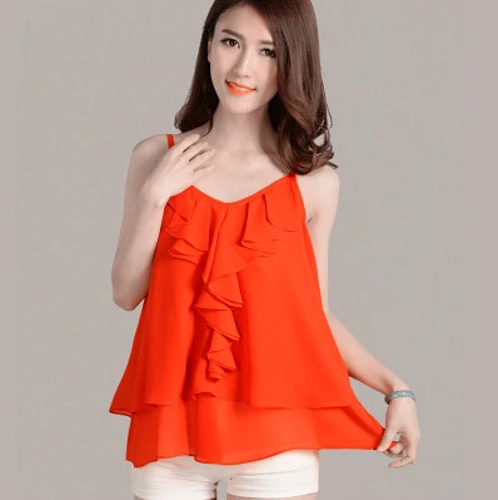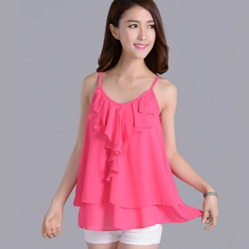 New Plus size women Tops S - 6XL 6XL women casual chiffon shirts & blouseSpaghetti Strap vest Tanks Cam