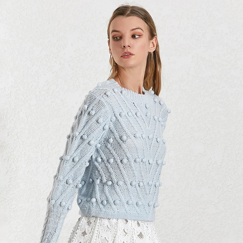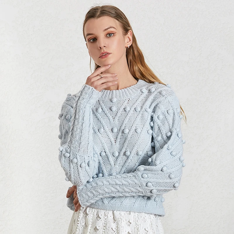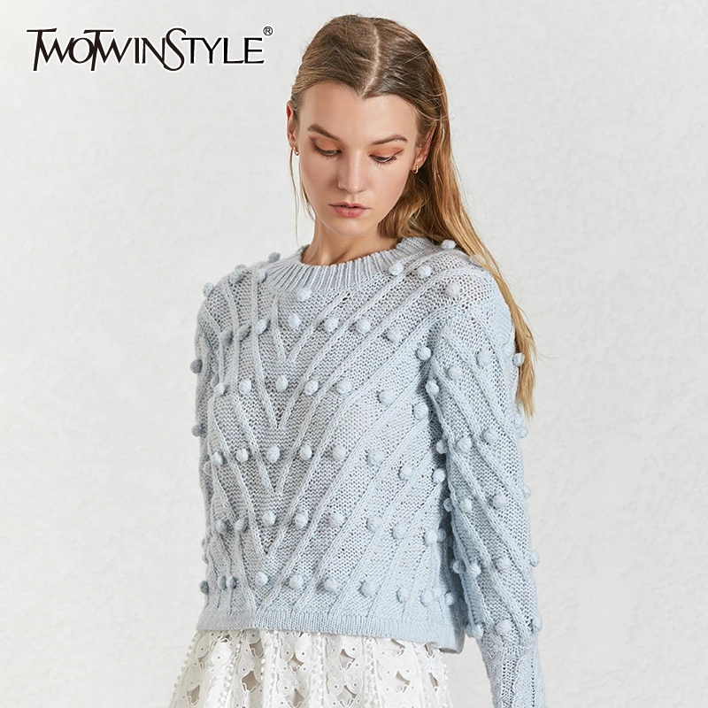 New TWOTWINSTYLE Lantern Sleeve Sweater For Women O Neck Large Size Ball Knitting Pullover Tops Female