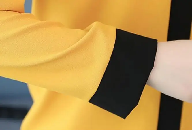 Promo Spring Summer 2019 New Women Chiffon Blouse & Tops Feminine Long Sleeved V Neck PatchWork Blouse &