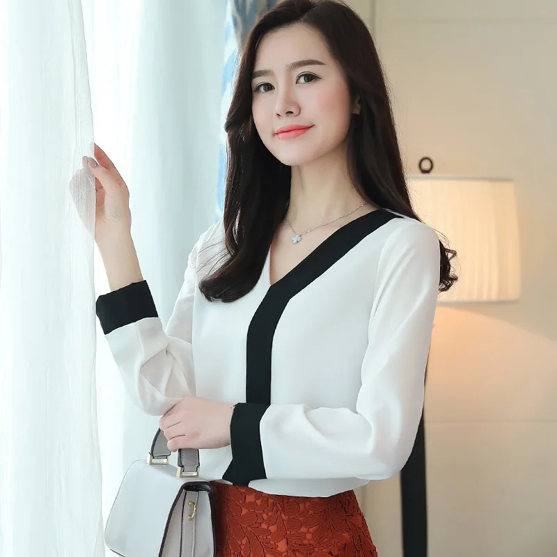 Today i want to review about Spring Summer 2019 New Women Chiffon Blouse & Tops Feminine Long Sleeved V Neck PatchWork Blouse & . I uncover this cool product from China Online Store, best manucafturer.